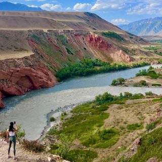 • Continue to Barskoon Gorge and follow the beautiful Barskoon River. Enjoy a short hike to the waterfalls (1–2 km) and visit the Gagarin Statue