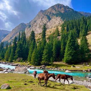 • Continue to Barskoon Gorge and follow the beautiful Barskoon River