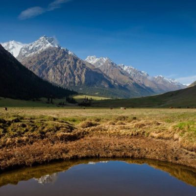 Jyrgalan Valley is a scenic destination in eastern Kyrgyzstan, nestled in the Terskey Alatau mountains. Known for its stunning landscapes, it features lush meadows, alpine lakes, and rugged peaks. The valley offers excellent trekking, wildlife viewing, and opportunities for winter sports like skiing.